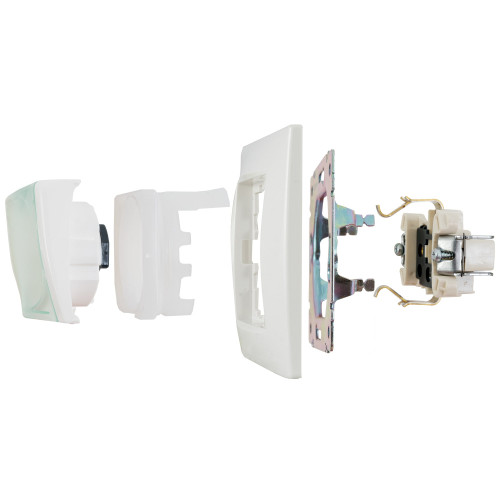 - Острые крепёжные лапки с широким углом раскрытия обеспечивают надёжную фиксацию в монтажной коробке.