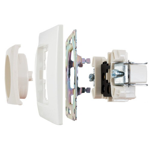 - Острые крепёжные лапки с широким углом раскрытия обеспечивают надёжную фиксацию в монтажной коробке.