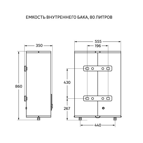 - Расстояние между креплениями составляет 19,6 см. К бойлеру подключаются трубы диаметром 0,5 дюйма. Расстояние между отверстиями — 33 см. Максимально допустимое давление в трубах — 6 бар.