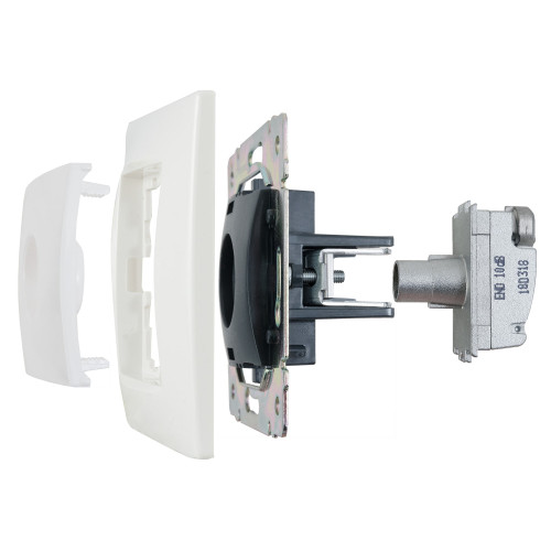 - Присоединение коаксиального кабеля к розетке осуществляется удобным безвинтовым коннектором.