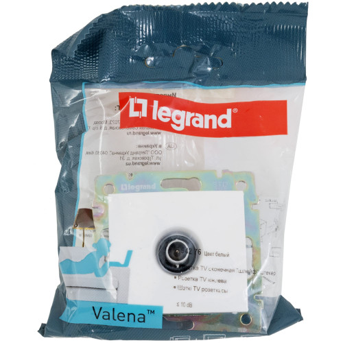 Оконечная ТВ-розетка Legrand Valena Classic, цвет белый, является составной частью схемы последовательного подключения "шлейф" (от одного к другому) ТВ-приёмников. Устанавливается в конце линии, применяется совместно с проходными ТВ-розетками. Не применяется в качестве одиночной розетки для одного телевизора.