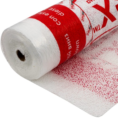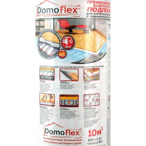 Полимерная подложка относится к рулонным материалам, предназначена для укладки под ламинат. Изделие исполняет роль изолирующего слоя, располагаемого между финишным напольным покрытием и черновым полом. Основной материал изготовления — пенополистирол. Функции подложки заключаются в изоляции влаги, амортизации, компенсации линейных расширений, звукопоглощении и дополнительной теплоизоляции. Страна производства — Россия.