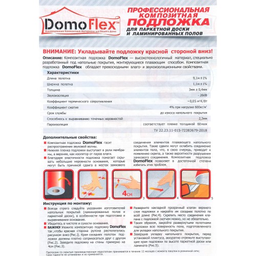 • Ширина рулона 1,1 м + 0,1 м для нахлеста. Длина полотна - 9,1 м.
