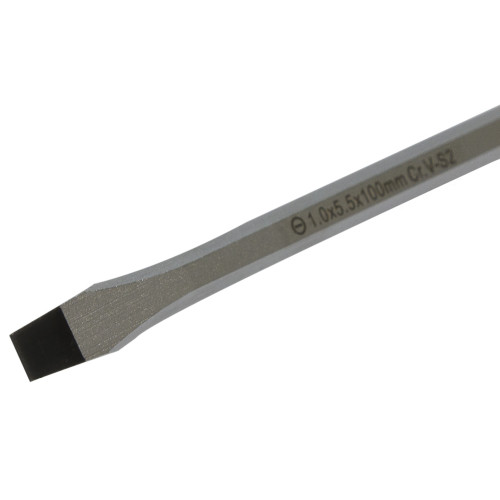 Отвертка шлицевая ударная Dexter ― ручной слесарный инструмент, применяемый для подключения электричества и мелкого ремонта. Подходит для демонтажа застарелых и заржавевших винтов, болтов и саморезов. Главная особенность ударной отвертки заключается в монолитном сердечнике, который на одном конце выполнен в виде жала с наконечником типа SL5.5, на другом ― в виде массивной пятки. У основания жала сердечник выполнен в форме шестигранника, который позволяет придать отвертке крутящий момент при помощи ключа после удара молотком.