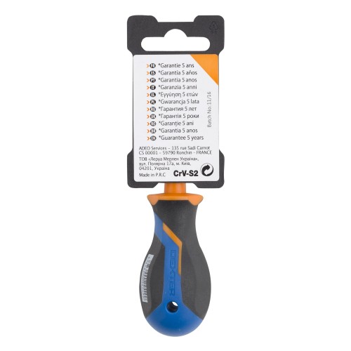 Отвертка крестовая Dexter ― ручной слесарный инструмент, применяемый для механического ввинчивания и отвинчивания изделий или крепежа с резьбой: шурупов, винтов, саморезов. Модель оснащена прочным металлическим стержнем с наконечником типа PH2. Отвертка используется для подключения электричества и мелкого ремонта. Ручка в мягкой оболочке выполнена из двухкомпонентного пластика, отличается эргономичной формой для комфортного хвата. Отвертка с магнитным наконечником удобна в использовании за счет фиксации и удерживания крепежа. Рабочая часть отвертки представляет собой хромованадиевое стальное жало сплава S2 длиной 25 мм и шириной 6 мм. Стержень из высокопрочного металла отличается рядом достоинств:
