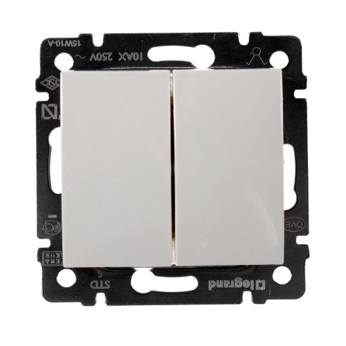 Выключатель двухклавишный Legrand Valena Classic для скрытого монтажа, номинальный ток 10 А, цвет слоновая кость, предназначен для управления двумя электрическими цепями.