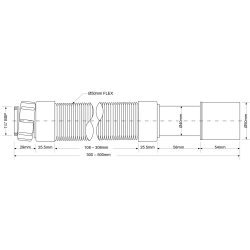 Труба гофрированная Mcalpine раздвижная 1.1/4 40/50,мм длина 500 мм MRMF105S