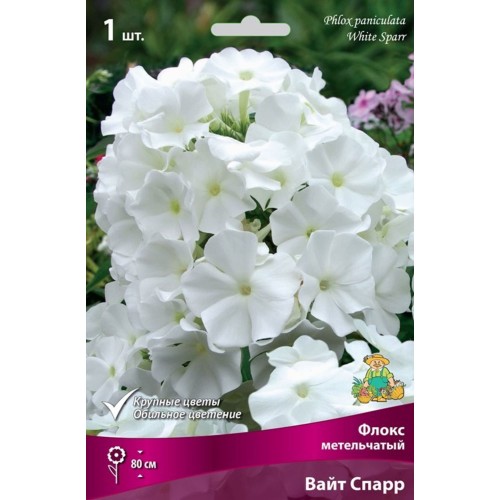Флокс метельчатый Вайт Спарр луковица - травянистое многолетнее растение. Стебли прямостоячие, восходящие или ползучие, от 10-20 см до 120-150 см высотой. Листья цельнокрайные, сидячие, расположены супротивно, иногда в верхней части стебля — в очередном порядке. Цветки душистые, белые, розовые, красные, сиреневые, алые, голубые, карминовые с глазком в центре, 2,5-4 см в диаметре, обычно собраны в щитковидные или метельчатые соцветия различного строения и величины, реже одиночные.