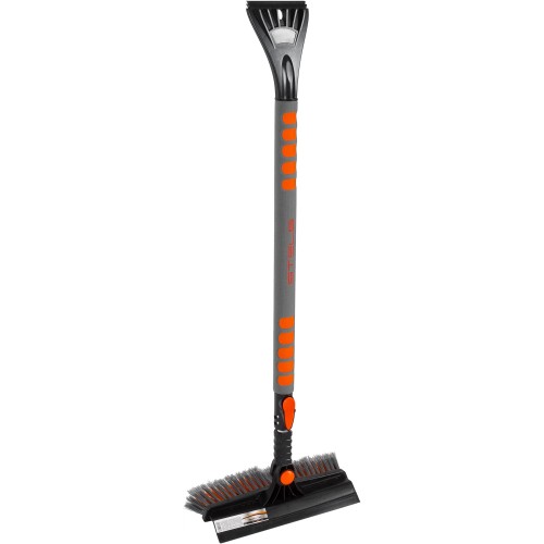 Щётка со скребком телескопическая позволяет очищать стекла и кузов автомобиля от сухого и мокрого снега, льда. Выполнена из прочного пластика. Размер — 900 мм.