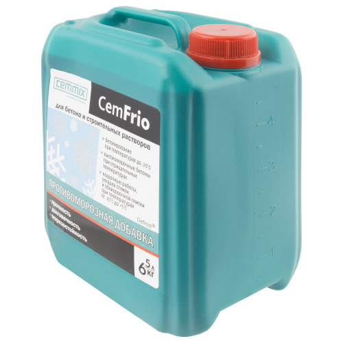 Противоморозная добавка CemFrio используется при проведении строительных работ в условиях низких температур. Она обладает противоморозным, ускоряющим и пластифицирующим действием, подходит для бетона и строительных растворов. Позволяет работать при температуре до -20°C. Способствует увеличению прочности бетонной смеси на 10%, повышает сцепку с металлоизделиями и арматурой, поэтому, купив противоморозную добавку, можно значительно сократить расходы на проведение сопутствующих работ.